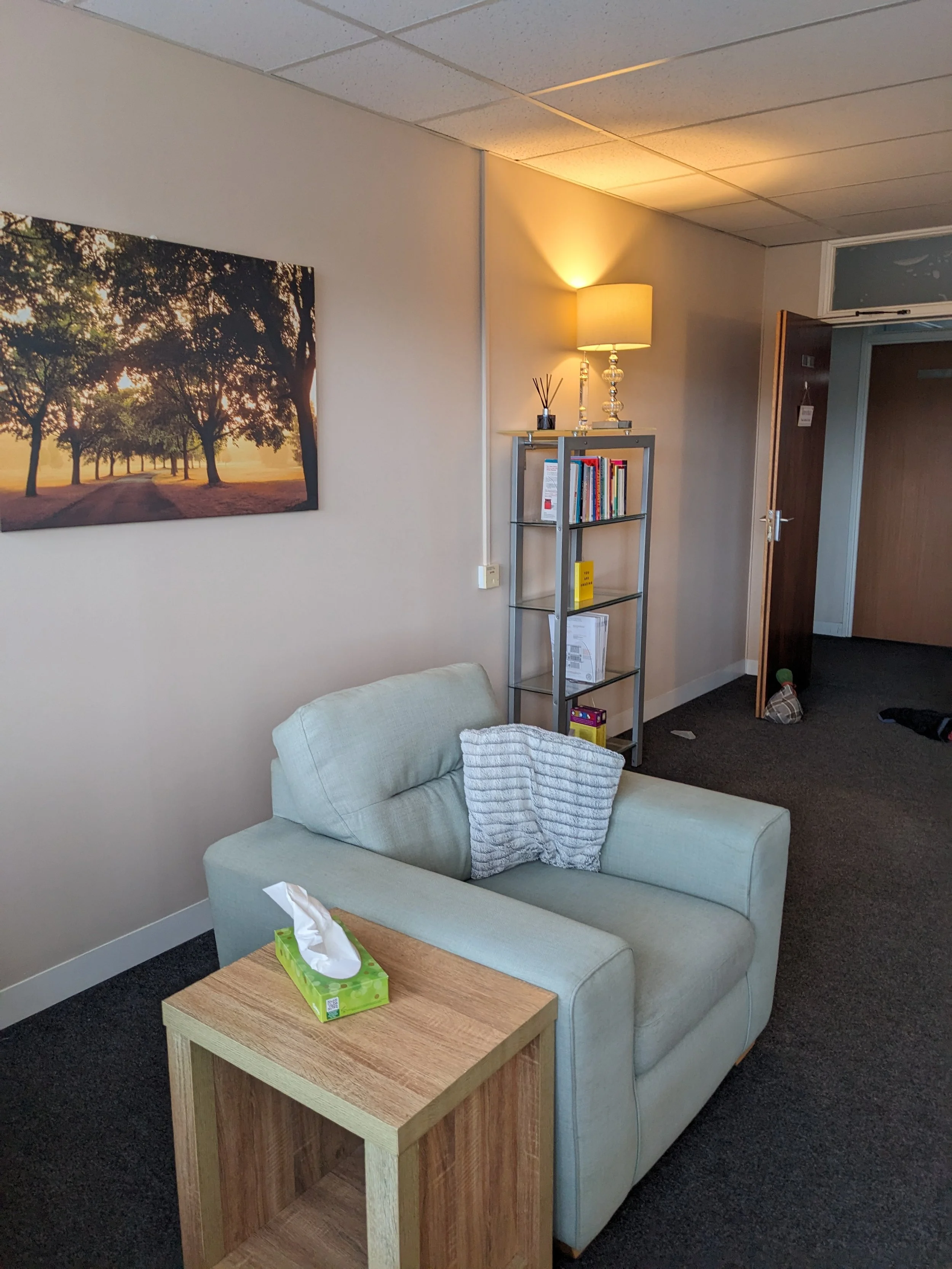 Our new counselling room is designed to offer a calm, private, and welcoming environment where you can feel completely at ease. Soft lighting, comfortable seating, and warm, natural décor create a soothing atmosphere that supports open conversation and emotional safety. The space is quiet and confidential, allowing you to focus fully on your wellbeing without distraction. Whether you're visiting for the first time or continuing your journey, our counselling room provides a safe, supportive setting for reflection, healing, and growth.